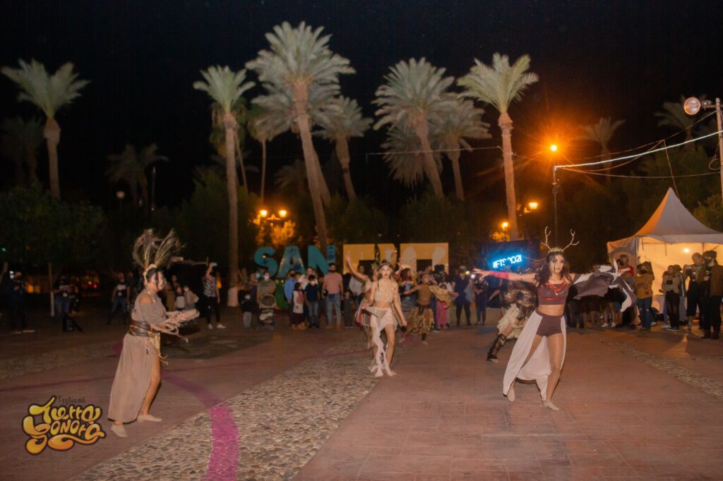 El día de apertura se presentó la Escuela de Danza Marina Glez con un número de danza contemporánea y acrobacia, y ayer viernes 12 de noviembre dijo, el maestro Daniel Díaz presentó el teatro performance “Representación de la danza de Sonora después del Apocalipsis” en la Explanada Municipal, frente al Foro Rock.