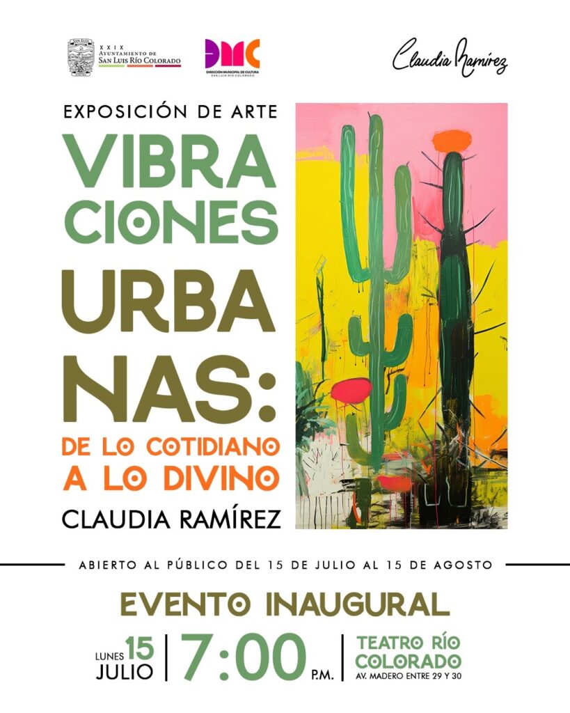 San Luis Río Colorado, Sonora (Julio 08 del 2024).- El 29 Ayuntamiento, a través de la Dirección Municipal de Cultura, anuncia que próximamente llevará a cabo la inauguración de “Vibraciones Urbanas: de lo cotidiano a lo divino”, exposición de arte de la artista Claudia Ramírez.