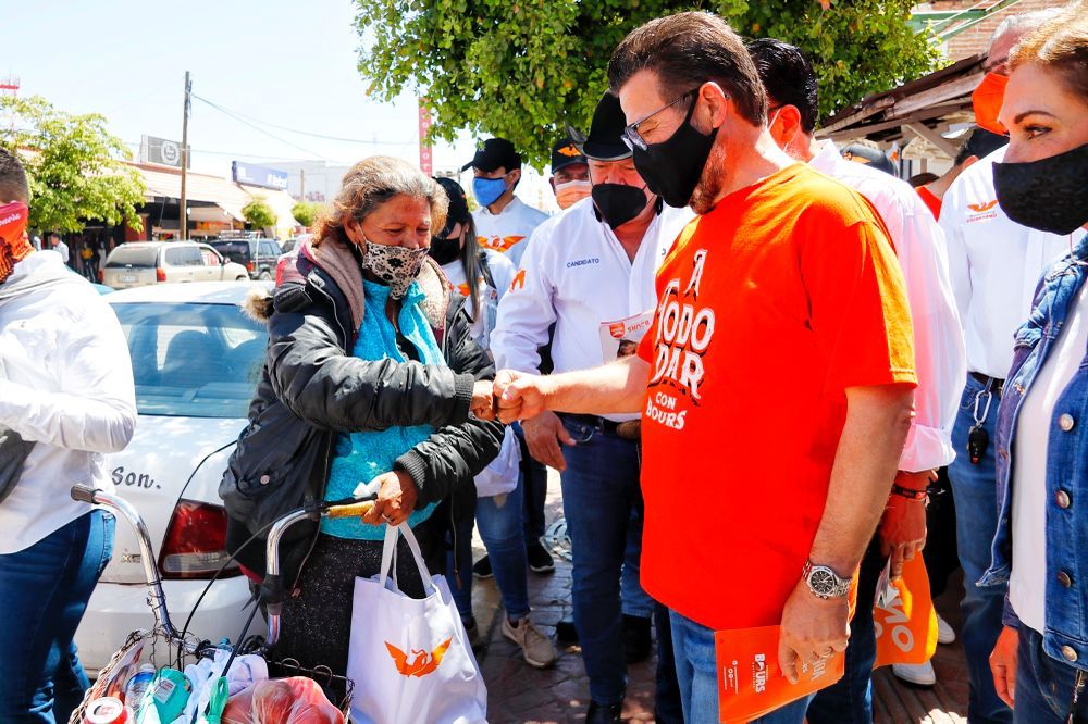 Navojoa, Sonora. 19 de abril de 2021.- “Ahí le encargo mucho ¿no? Sobre todo la inseguridad, ya es demasiado aquí”, le dice Tita Velazco a Ricardo Bours.