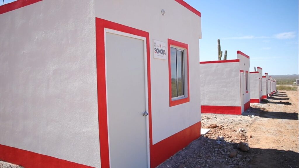 La construcción de los pies de casa estuvo a cargo de la Comisión de Vivienda del Estado de Sonora (Coves) bajo el convenio de colaboración con el Ayuntamiento local que realizó la donación de los terrenos para las familias damnificadas.