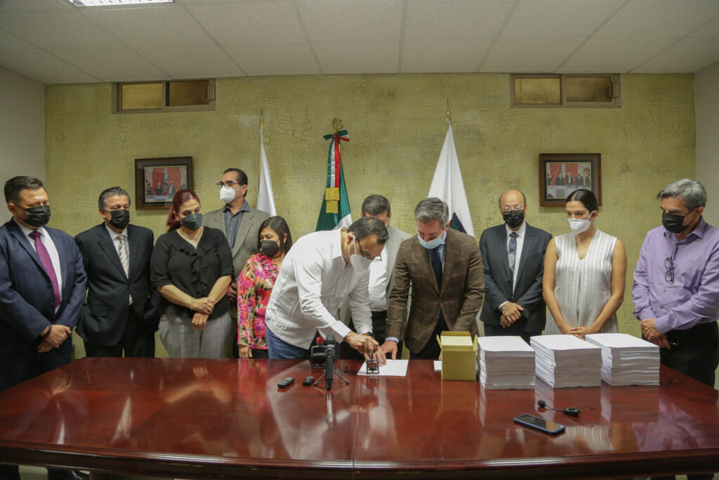 El Presidente del Congreso del Estado, diputado Jacobo Mendoza Ruiz, recibió este día el proyecto del paquete económico del Estado para el ejercicio fiscal 2022, que en ingresos asciende a 66 mil 940 millones de pesos, del cual hizo entrega el Secretario de Hacienda del Gobierno del Estado, Omar Francisco del Valle Colosio.