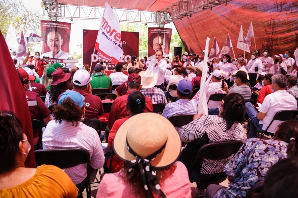 Ante representantes de los quince ejidos que integran la Asociación de Usuarios del Agua para Fines Agropecuarios (AUAFA) Guaymas-Empalme, y de militantes y simpatizantes de Morena y el Verde Ecologista, el senador licencia sostuvo en la plaza de La Atravesada: