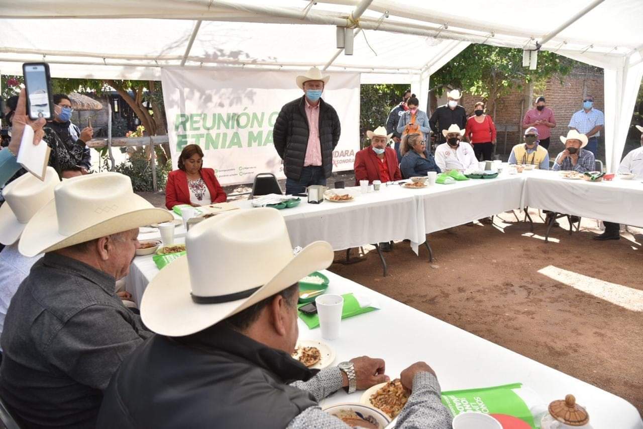 En San Ignacio Cohuirimpo, Navojoa el representante de la Alianza “Va por Sonora”, sostiene el encuentro con los gobernadores de la etnia, con quienes refrenda el compromiso por atender las necesidades de los pueblos indígenas.