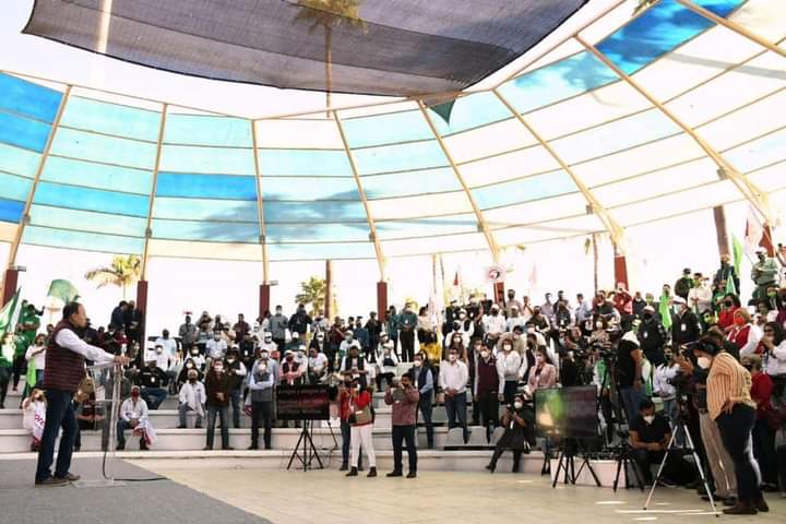 En evento con militantes y simpatizantes convocados de manera presencial y virtual en la plaza 5 de mayo, en el corazón de Navojoa, el candidato a gobernador de Sonora reiteró su honra por encabezar el movimiento de transformación en una región marcada por la historia y la lucha de los pueblos indígenas.