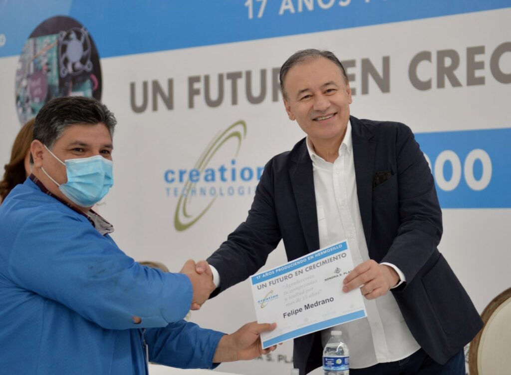 El gobernador Alfonso Durazo, ante directivos de Creation Technologies, así como las y los trabajadores de la empresa, se comprometió a impulsar el crecimiento del estado facilitando el establecimiento de la inversión en Hermosillo y en todo Sonora, acompañando a las empresas e inversionistas con transparencia, pues en su gobierno, dijo, se combatirá de fondo la corrupción.