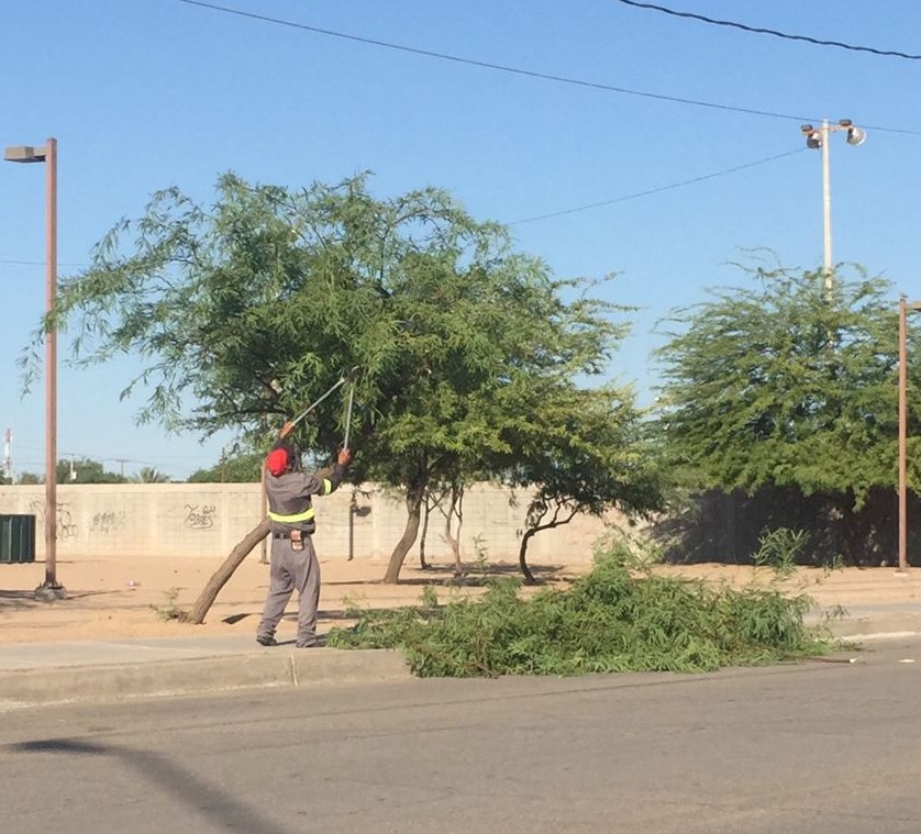 San Luis Río Colorado, Sonora (Agosto 10 de 2021).- Con el interés de mantener una ciudad limpia y libre de basura, la dirección de Obras y Servicios Públicos Municipales, continúa con las actividades de limpieza en calles, parques, camellones, fraccionamientos, predios, entre otros.
