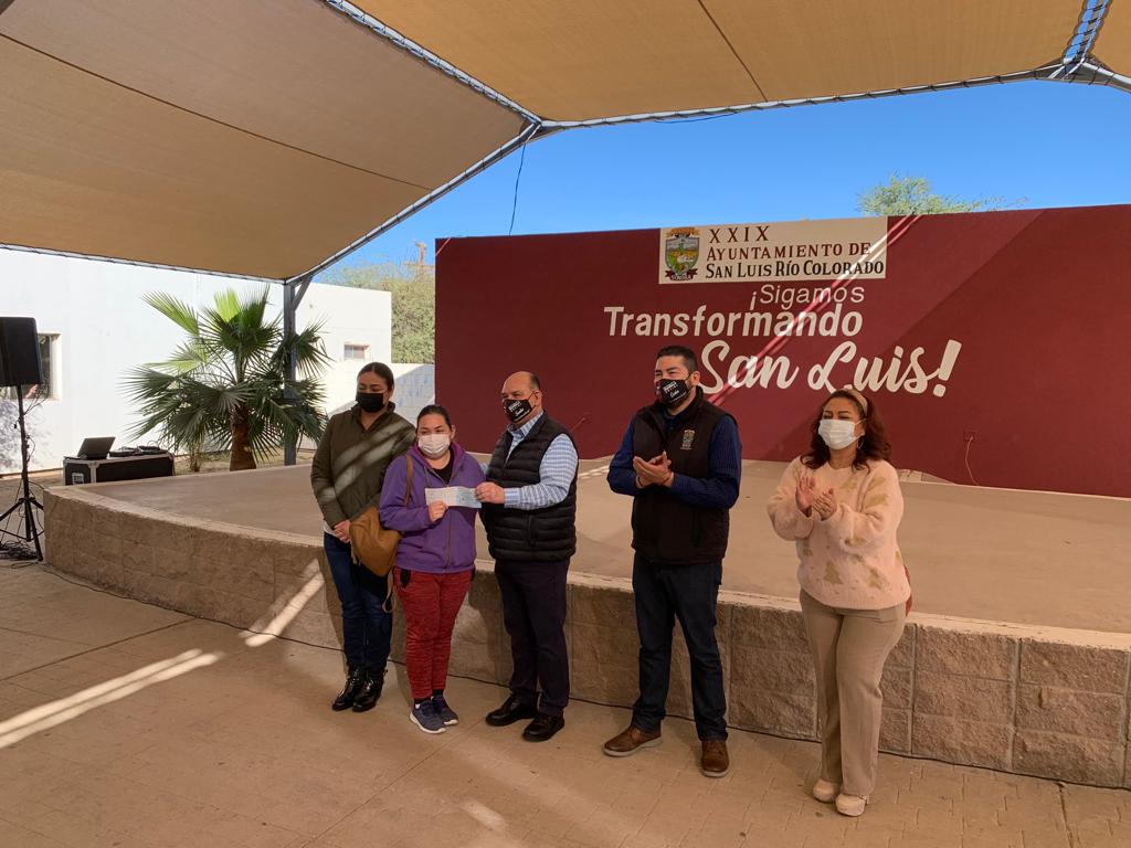 La ceremonia fue presidida por el alcalde Santos González Yescas y la directora general de Programas Sociales, Patricia Duarte Franco, quienes otorgaron los apoyos a sanluisinos que viven en condiciones de pobreza, en las inmediaciones de Desarrollo Social Municipal.