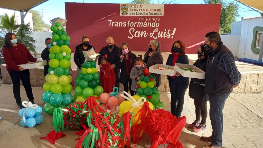 También el director de Desarrollo Social hizo entrega de paquetes especiales de regalo a tres pequeñas con discapacidad que celebraron su cumpleaños este día, hechos a mano por los alumnos de los diferentes cursos, una noble acción que agradeció personalmente la presidenta de DIF Municipal, Yolanda Orozco de González.