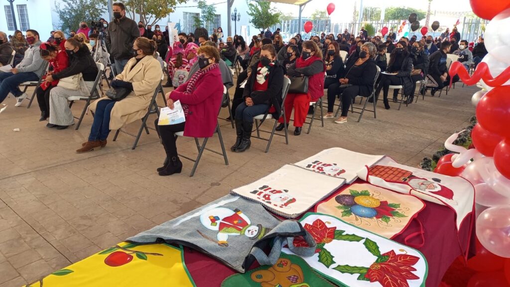 En el festejo, el Presidente Municipal reconoció a los doce maestros y alumnos de los 13 talleres impartidos de bisutería, costura, pilates, zumba, maquillaje, estilismo, globoflexia, uñas acrílicas, pintura para adultos, manualidades navideñas, repostería, elaboración de piñatas y lenguaje de señas.