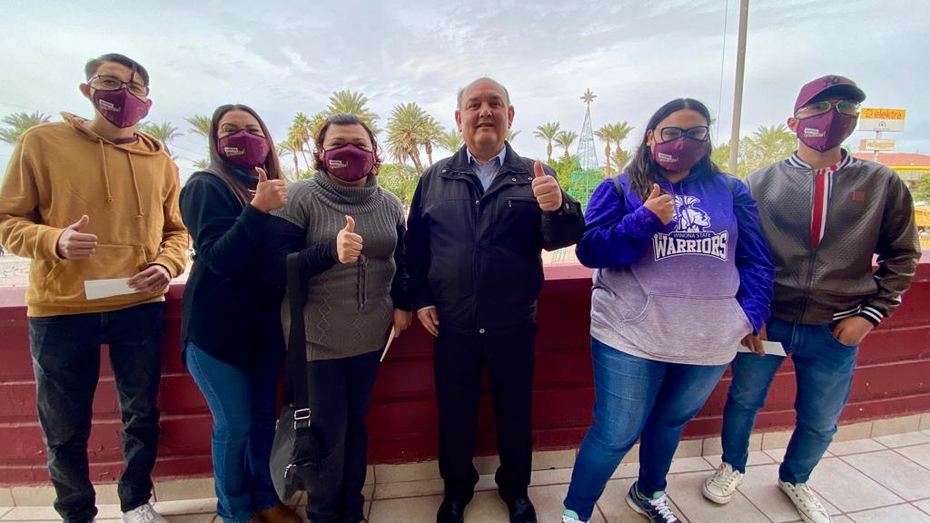 San Luis Río Colorado, Sonora (Diciembre 21 de 2021).- Un total de 120 estudiantes de universidad se vieron beneficiados a partir de hoy con un apoyo económico otorgado por parte del 29 Ayuntamiento a través de la Inmobiliaria Municipal del Río Colorado.
