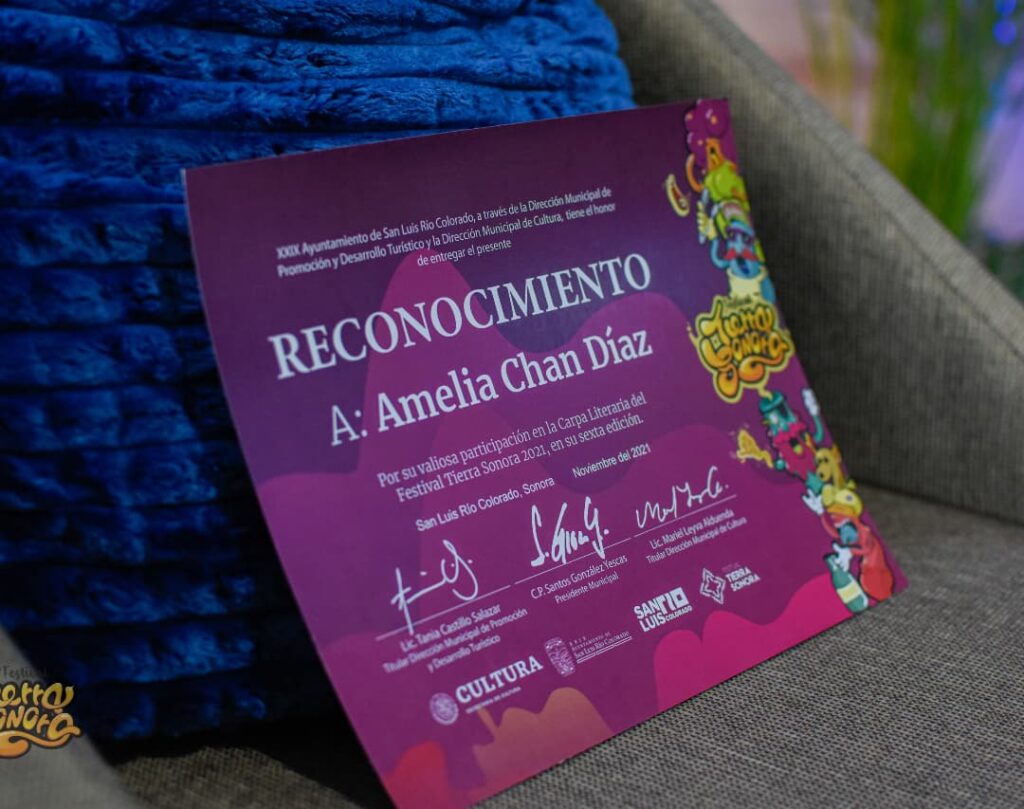 La artesanía, indicó, es una de las actividades por las cuales Amelia Chan ha sobresalido, logrando difundir su cultura a distintas ciudades vecinas a través del arte que se impregnan en sus piezas de vestimenta típicas llamadas “pectorales”; con diseños representativos de su cultura y una técnica particular que ha sido transmitida de manera ancestral dentro de su comunidad, incluso han llegado a ser utilizadas por integrantes de la etnia que reside en Somerton, Arizona.
