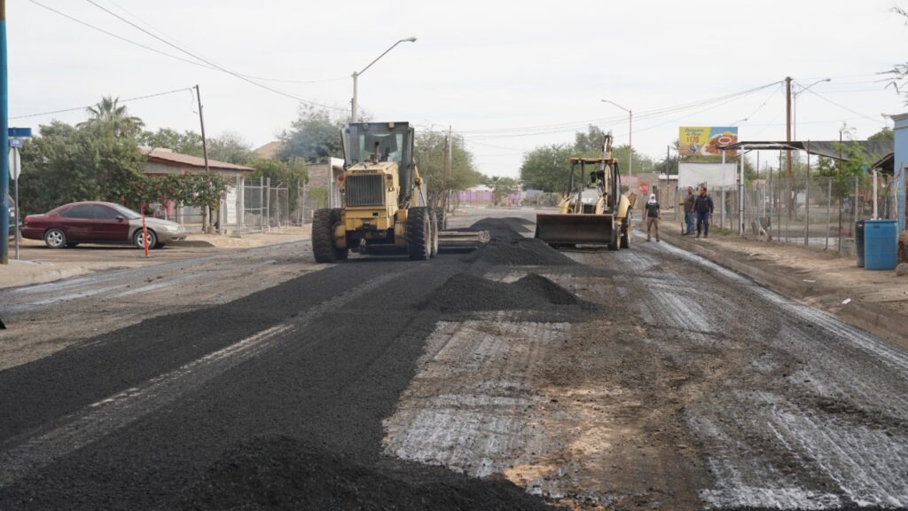 San Luis Río Colorado, Sonora (Noviembre 17 de 2021).- Más de 10 mil de sanluisinos se verán beneficiados directamente con la nueva obra de recarpeteo que está llevando a cabo la Dirección de Obras y Servicios Públicos en el punto de la Av. Benjamín Flores (brecha) y calle Quinta.