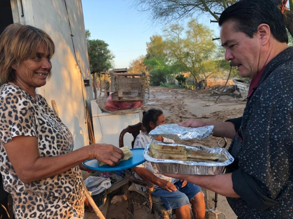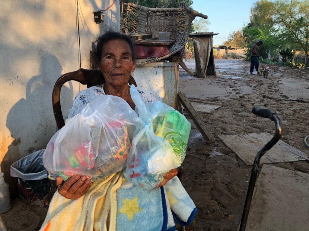 San Luis Río Colorado, Sonora (Septiembre 28 de 2021).- Con el propósito de subsanar estragos por el paso de las lluvias en el Golfo de Santa Clara, el presidente municipal Santos González Yescas encabezó acciones de apoyo a las familias en el poblado por medio de las dependencias de DIF Municipal y Desarrollo Social, las cuales llevaron despensas, productos de limpieza, ropa, botellas de agua, pañales, cobijas, entre otros artículos indispensables para las familias más afectadas