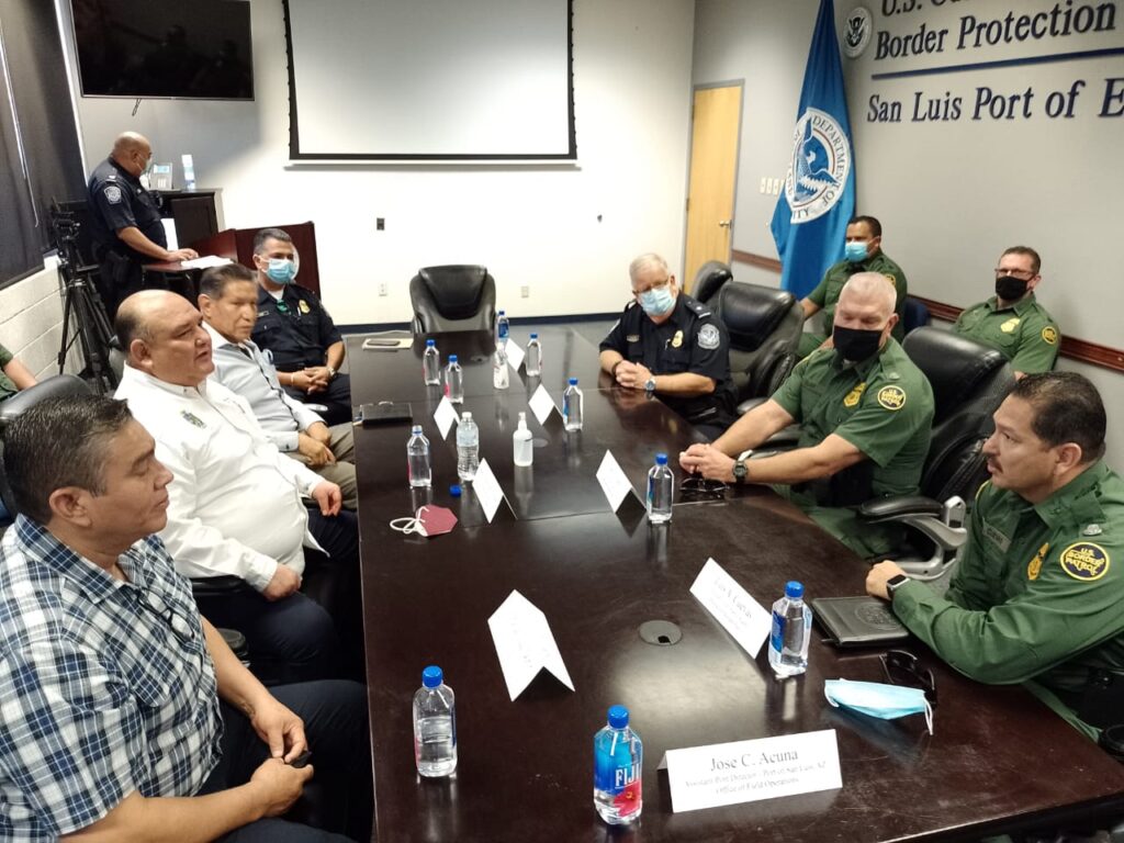 La reunión, que se llevó a cabo en el Puerto Fronterizo de San Luis, Arizona, fue presidida por el jefe de la Patrulla Fronteriza del Sector de Yuma, Arizona, Chris T. Clem y John Shwamm, director de San Luis.