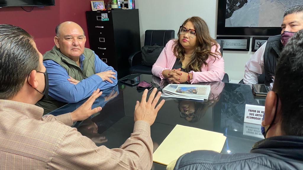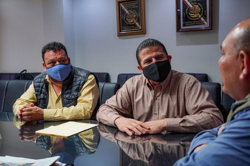 San Luis Río Colorado, Sonora (Diciembre 09 de 2021).- Sacar adelante un buen trabajo en equipo para beneficio de la comunidad fue el tema central de la reunión que encabezó hoy el alcalde Santos González Yescas, y el director regional del Instituto de Capacitación para el Trabajo del Estado de Sonora (Icatson), Erick Eduardo Ruiz Espinoza.