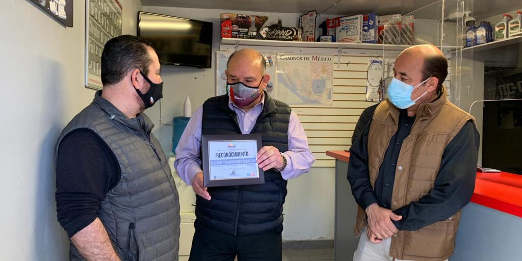 En compañía del director ejecutivo de Oprode, Mario Alberto Guevara Rodriguez, el Presidente Municipal entregó el reconocimiento a Daniel Ruvalcaba Mungarro, propietario de un taller de transmisiones automáticas.