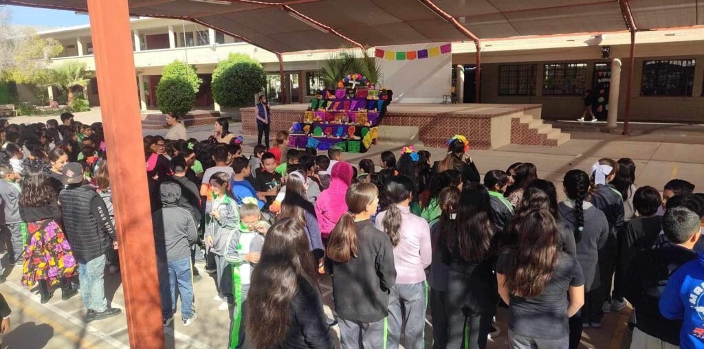 San Luis Río Colorado.-  Alumnos de la Primaria Felix Soria rindieron tributo a grandes músicos de San Luis Río Colorado, colocando en su honor un altar de muertos en la explanada de la escuela.