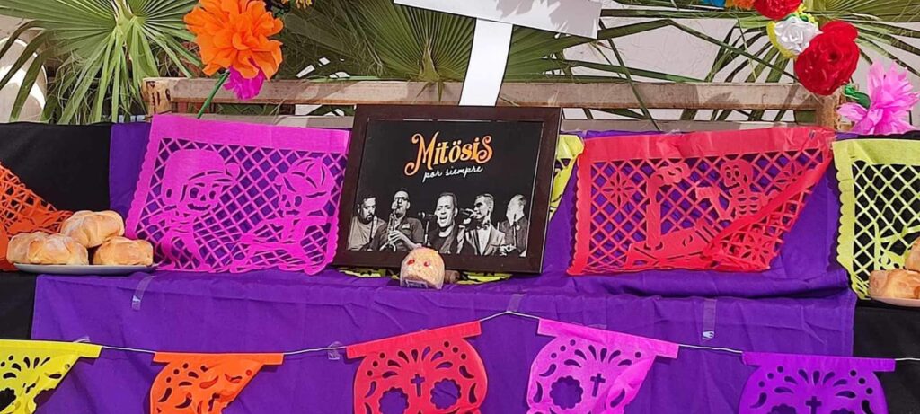 Hugo Macías Duarte, miembro del grupo Mitosis, publicó en su perfil de Facebook fotos y un post que dice “Gracias mi primaria Felix Soria por el Altar a mis hermanos #MitosisPorSiempre y gracias personal de la Escuela”