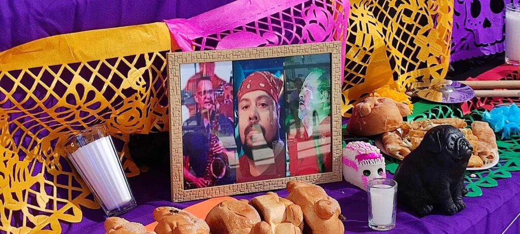 También se ve que colocaron algunos instrumentos musicales en el altar, donde el alumnado pudo apreciar este trabajo de la escuela para honrar la memoria de Ricardo, Aaron, Adrian y Antonio.