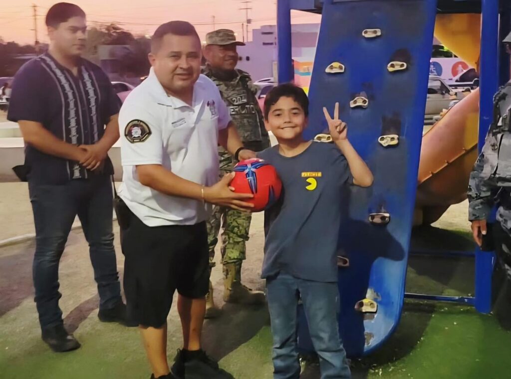 Como parte de las actividades, se entregaron balones de futbol a los menores, generando un ambiente de confianza y participación entre los vecinos.