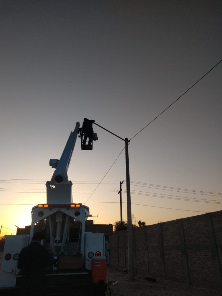San Luis Río Colorado, Sonora (Junio 07 de 2021).-Personal de la Dirección de Obras y Servicios Públicos Municipales rehabilitó 251 lámparas en la colonia Mezquite, ayudando a los residentes del sector con una mejor visibilidad y mayor seguridad pública.