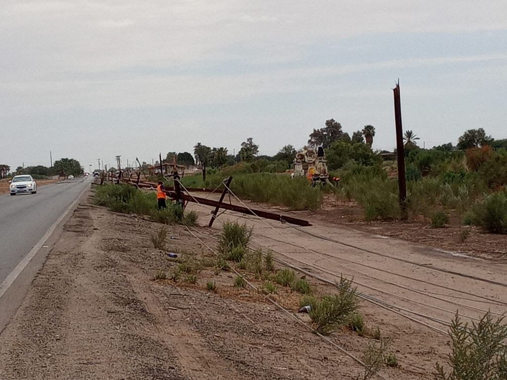 Esto, debido a la caída de varios postes conductores de cables de energía eléctrica y daños en otros, por una tormenta de agua acompañada de fuertes vientos.