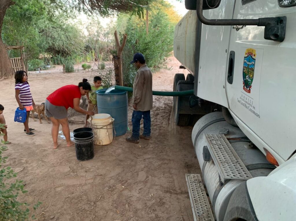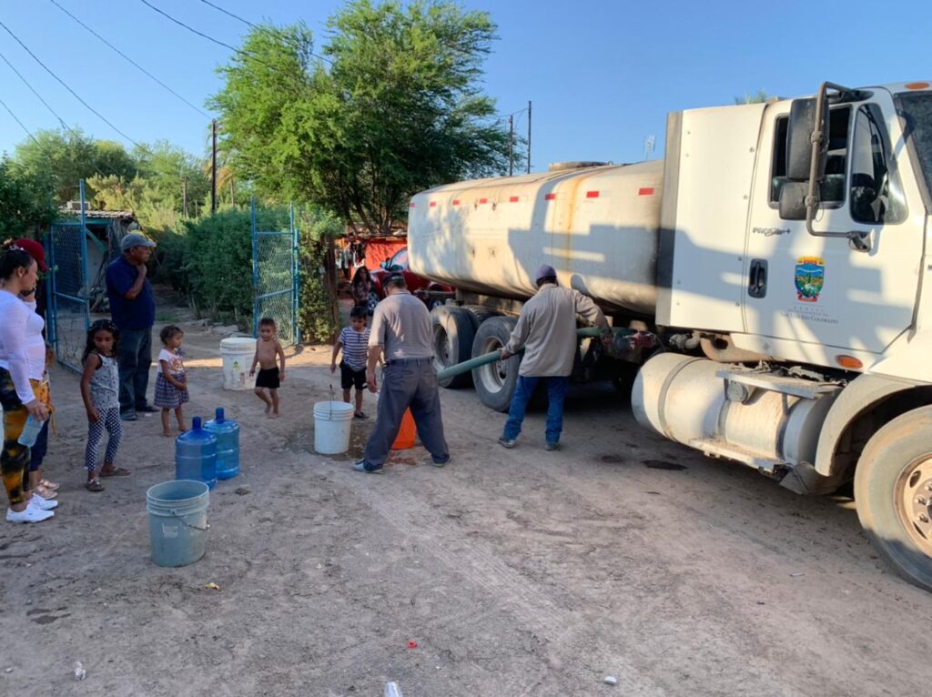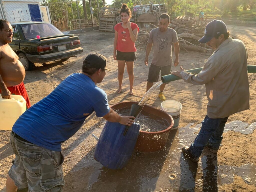 San Luis Río Colorado, Sonora (Agosto 29 de 2021).- En coordinación con la CFE, personal del Organismo Operador Municipal del Agua Potable, Alcantarillado y Saneamiento, restableció de manera parcial el suministro de agua por tubería a una parte del Golfo de Santa Clara.