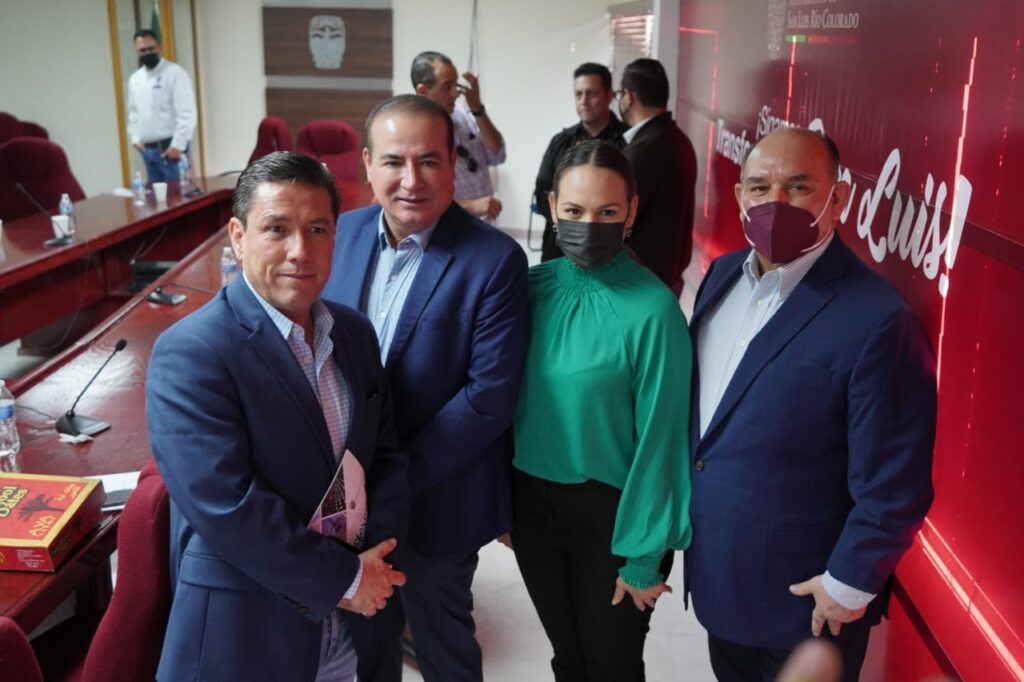 San Luis Río Colorado, Sonora (Noviembre 18 de 2021).- Para coordinar esfuerzos con el fin de atraer nuevas inversiones al estado y al municipio, esta mañana el alcalde Santos González Yescas, recibió la visita del secretario de Economía del Gobierno del Estado, Armando Villa Orduño, así como a la promotora de Prosonora, Cynthia López Ruíz.