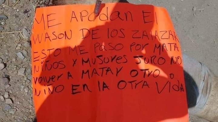 También mencionaron que en el lugar donde encontraron el cuerpo destajado, había una cartulina donde se mencionaba que lo mataron por asesinar mujeres y niños.