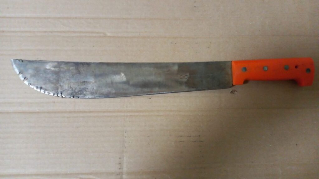 Abordando a quien se identificó como Pedro “V” de 33 años, asegurándole un arma blanca tipo machete, impropia para el lugar de donde fue interceptado, ya que es un instrumento de trabajo, pero se presume que puede ser utilizada en alguna comisión de delito.
