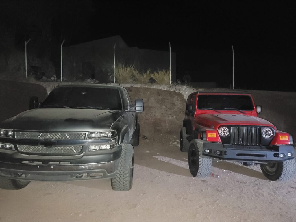 Además, se encontró calzado táctico, 19 cargadores abastecidos para arma de fuego, 747 cartuchos útiles de diversos calibres, cuatro chalecos tácticos, un arma de fuego, ropa diversa y un vehículo Jeep Wrangler, modelo 2004, de color rojo, que cuenta con reporte de robo del 8 de agosto de 2017 en Tucson, Arizona.