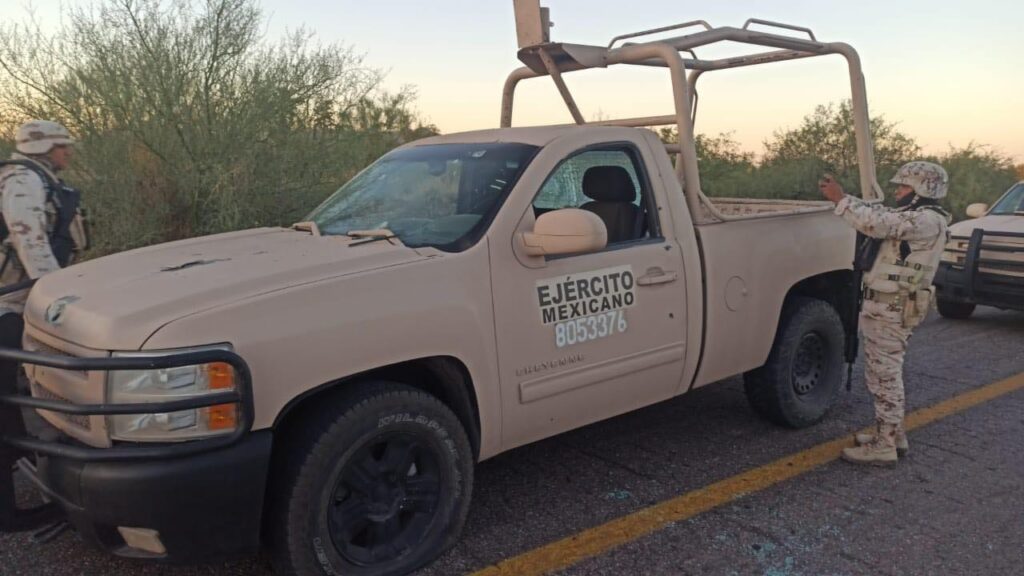 Altar, Sonora.- La madrugada de este martes elementos del Ejército Nacional y Policía Estatal fueron emboscados por un grupo del crimen organizado por la carretera carretera entre Oquitoa y Altar, Sonora, donde resultaron heridos de bala 5 elementos del ejército y un elemento de Seguridad Pública del Estado.