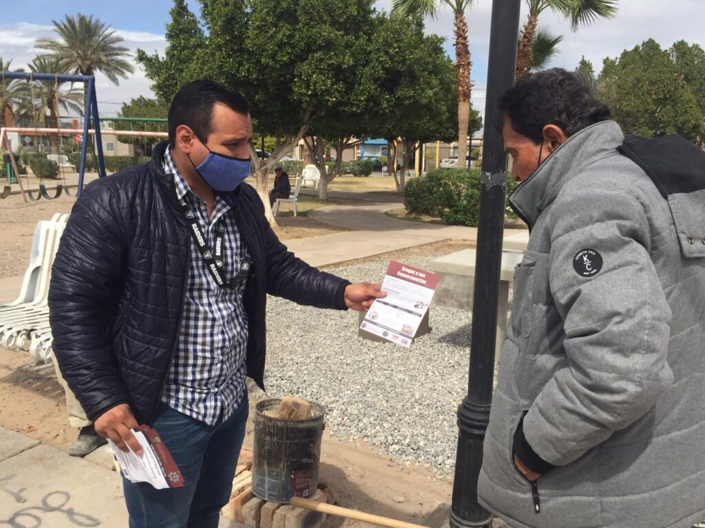 Elementos municipales siguen visitando colonias y parques para entregar la información a ciudadanos, con recomendaciones que ayuden a niños, jóvenes y adultos.