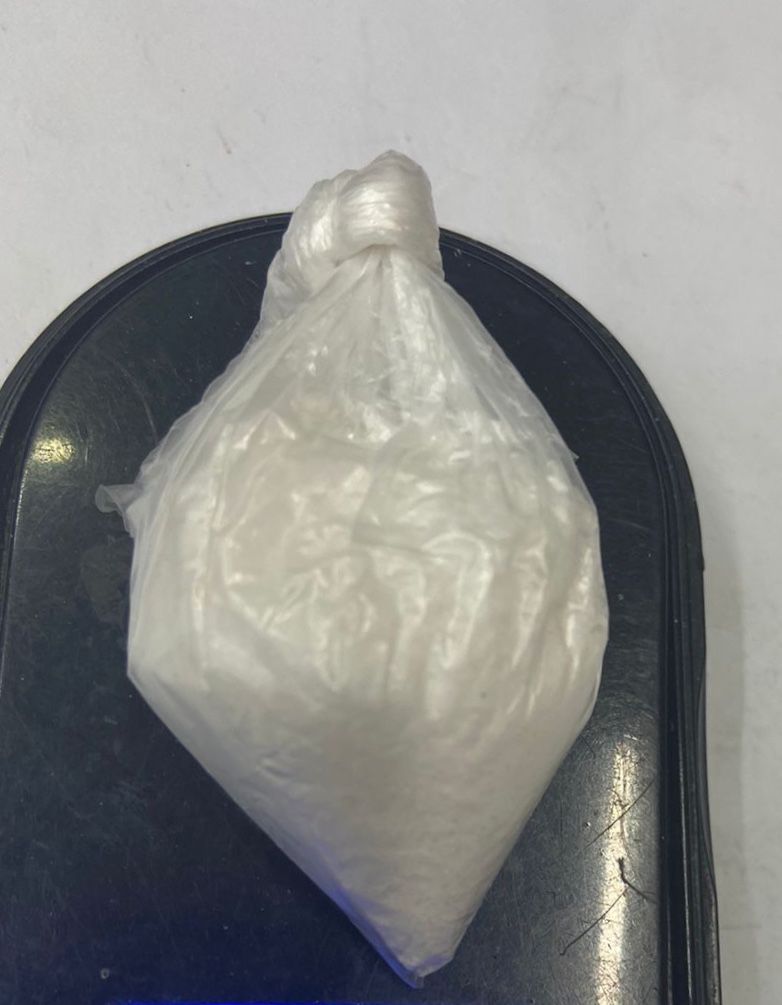 Localizando en la inspección del interior del vehículo, un envoltorio plástico con contenido de una sustancia granulosa al tacto con características a la metanfetamina, con un peso aproximado a los 13 gramos, varias cajetillas de cigarros, encendedores, accesorios para teléfono y botellas de licor.