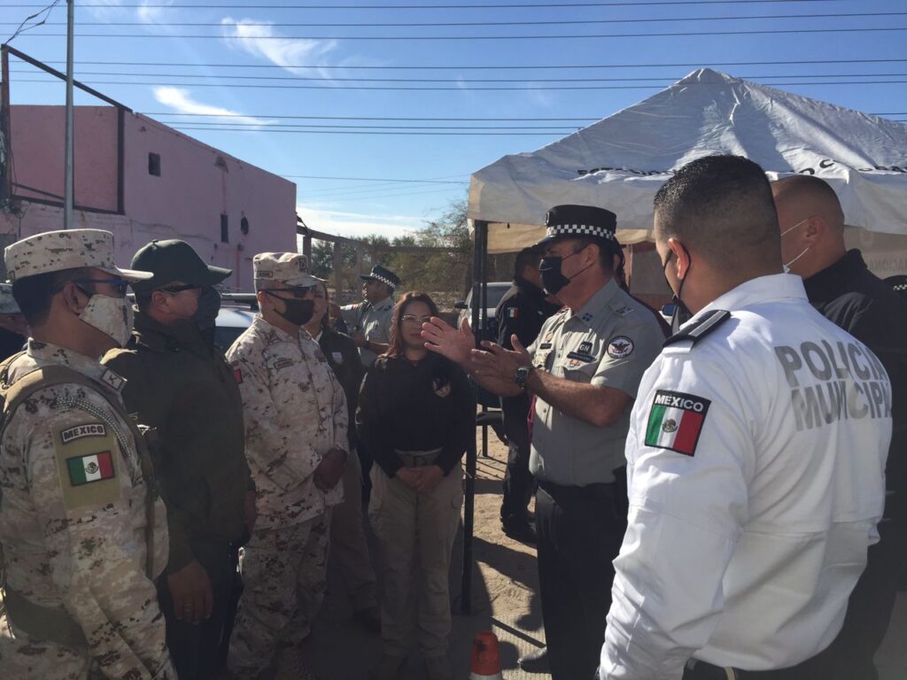San Luis Río Colorado, Sonora (Diciembre 17 de 2021).- Operativos las 24 horas en la ciudad y el valle de San Luis, y una atención especial a la zona comercial y bancaria, iniciaron este viernes de manera coordinada entre todas las fuerzas de seguridad.