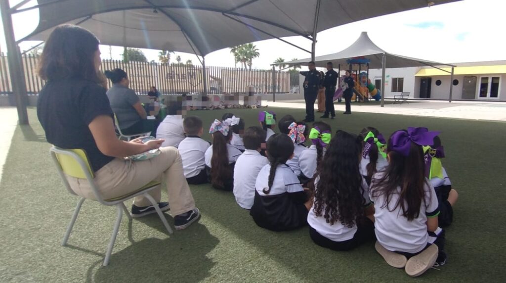 Fue la mañana de este jueves cuando los elementos de la Dirección de Seguridad Pública Municipal se trasladaron al plantel “María Montessori”, ubicado en la avenida Madero y calle 16, colonia Residencias.