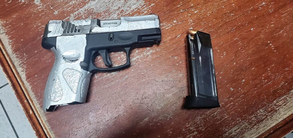 El arma es una pistola calibre 9 milímetros con el cargador abastecido con 7 cartuchos útiles.