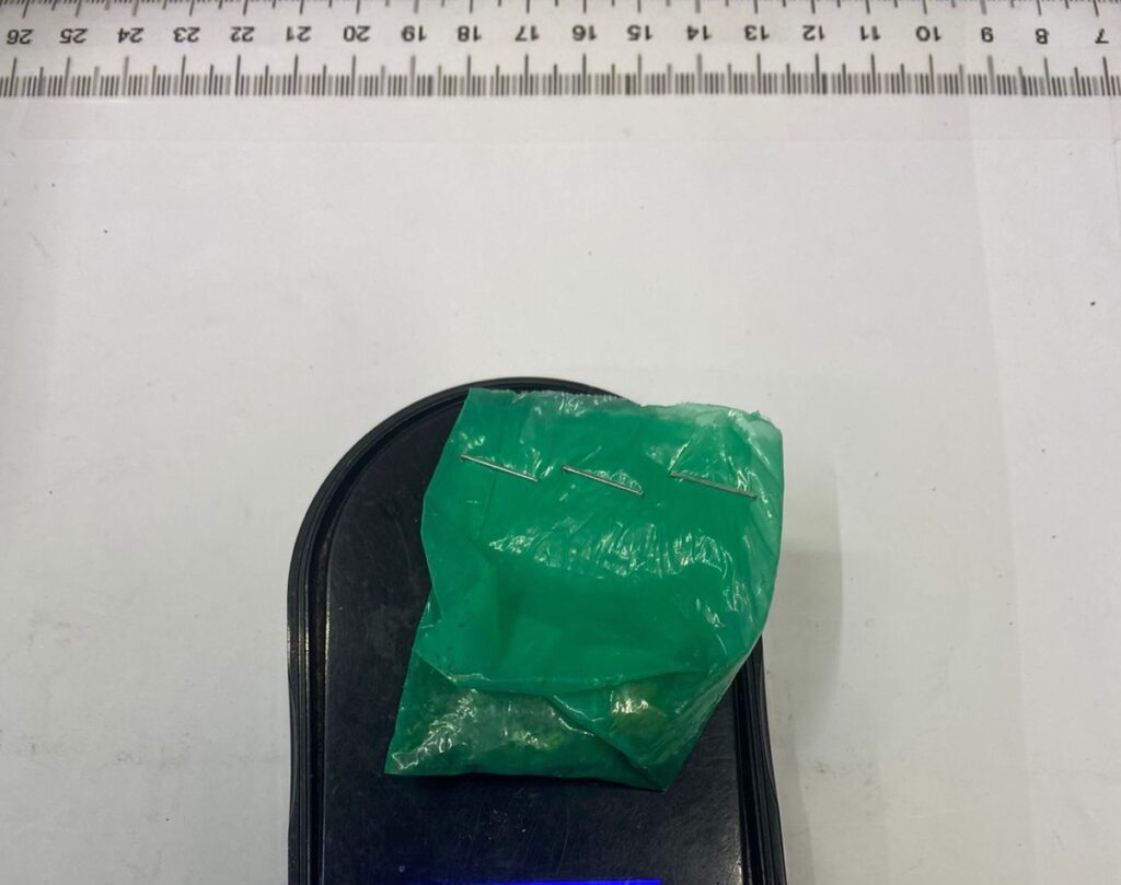 Abordando a quien se identificó con el nombre de Tomas “G” de 59 años, a quien se le comunico la razón de la presencia policial, autorizando el mismo a la práctica de una revisión preventiva en busca de drogas o armas, localizando en su vestimenta 2 cuchillos tipo cocina y un envoltorio con marihuana.