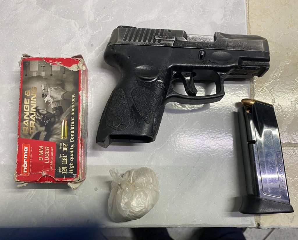 Se le solicitó una revisión preventiva a su vestimenta y al propio vehículo, a la cual accedió el mismo, no localizando nada en su persona, pero en el interior del automóvil se localizó en la parte media de la consola, una pistola tipo escuadra de la marca Taurus, calibre .9 milímetros y su cargador abastecido con 10 cartuchos útiles.