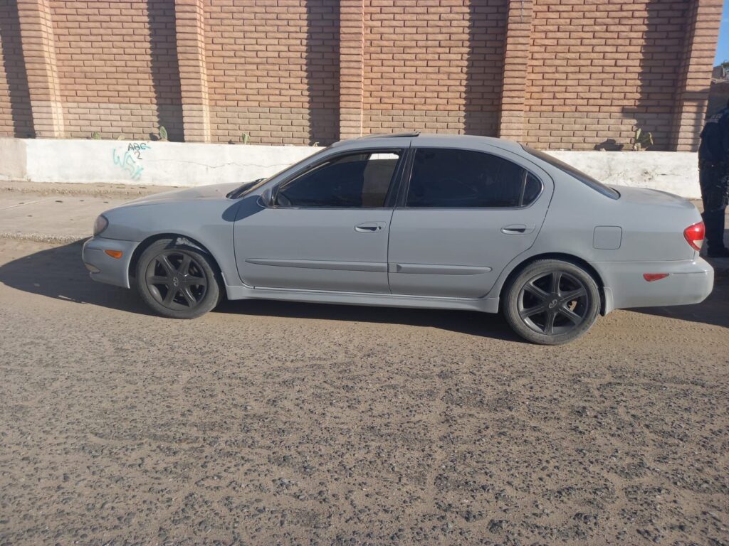 El segundo vehículo fue recuperado por la Carretera del Valle y la avenida 5 de Mayo, se trata de un sedán en aparente abandono de la marca Infinity, línea G35, modelo 2004.