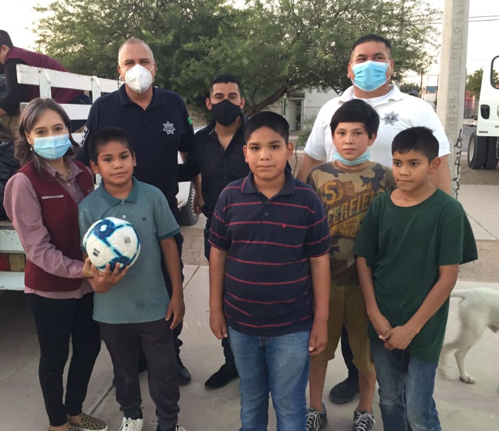 En esta ocasión, los elementos de la Dirección de Seguridad Pública Municipal asignados a la Unidad de Proximidad Social y de Prevención del Delito, practicaron fútbol rápido con niños de la colonia Aeropuerto, mientras sus padres eran atendidos de manera personalizada en la jornada del DIF Municipal.