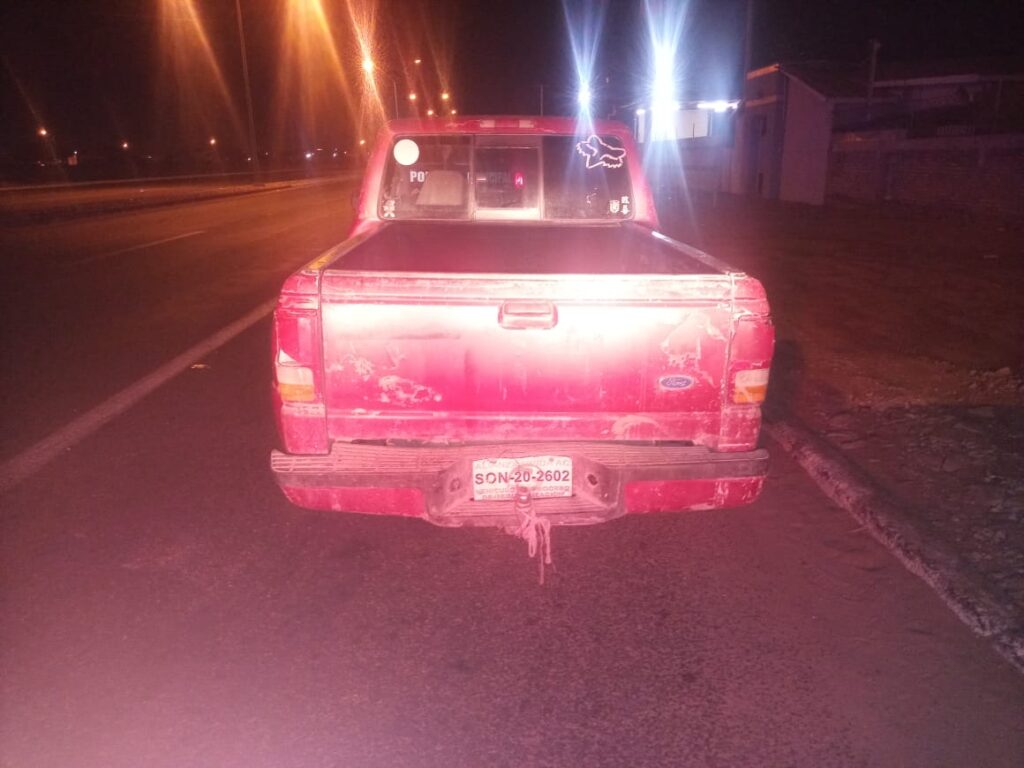 Se trata de un Ford Ranger de color guinda con placas de una asociación, mismo que fue localizado en la avenida Obregón